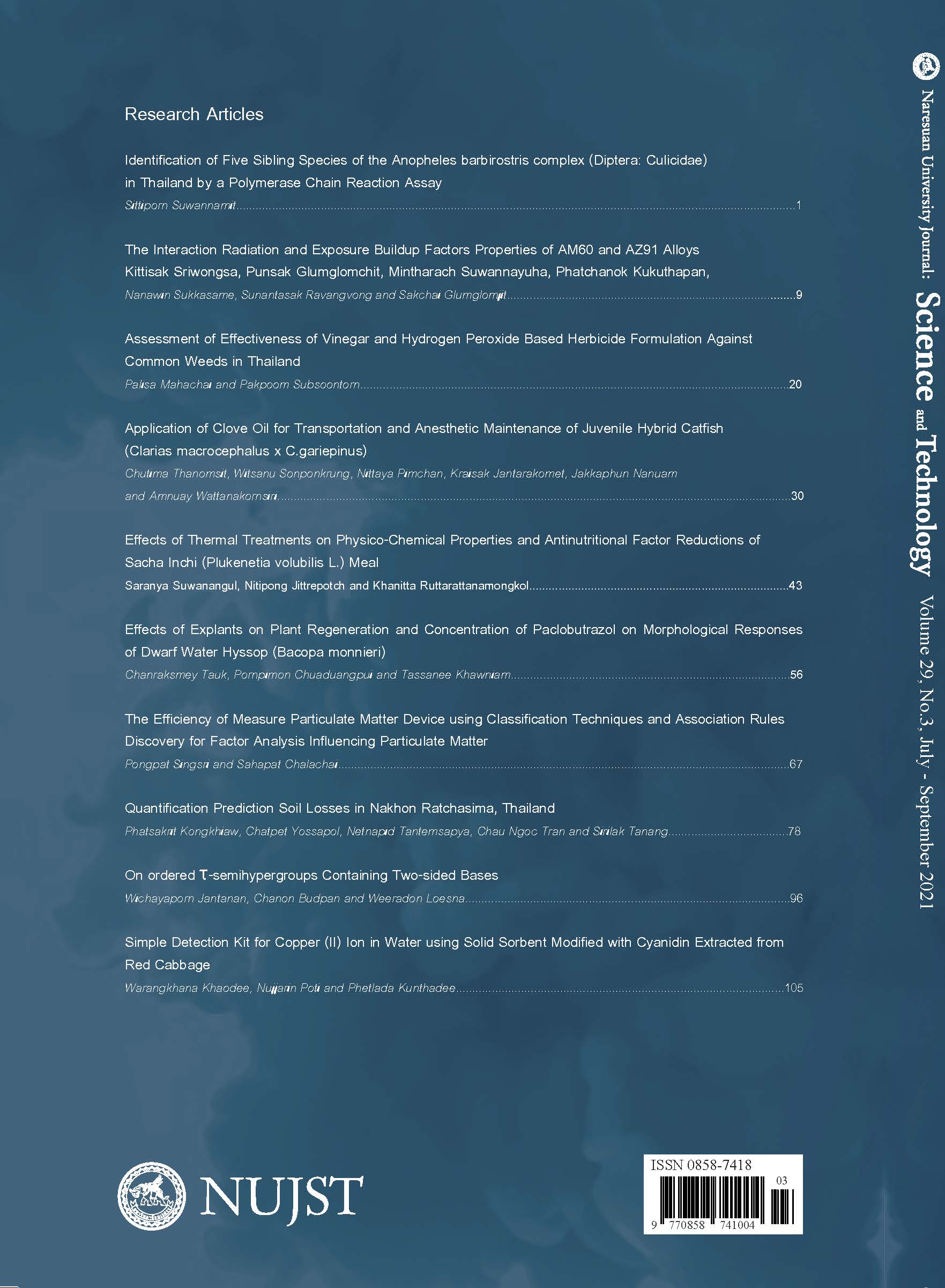 Copyright (c) 2021 Naresuan University Journal: Science and Technology