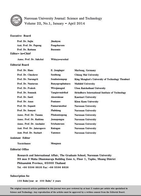Copyright (c) 2014 Naresuan University Journal: Science and Technology