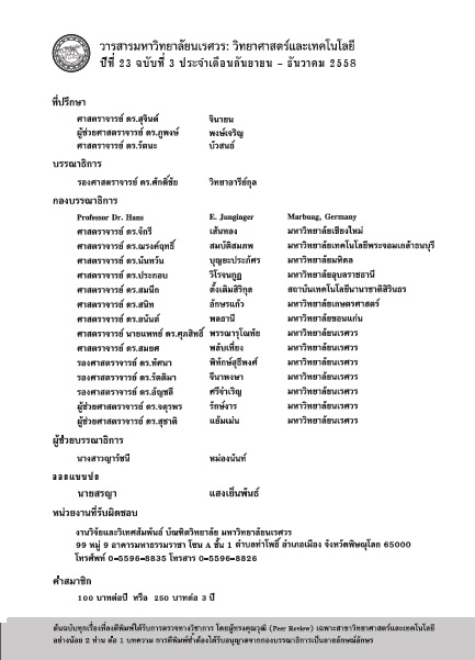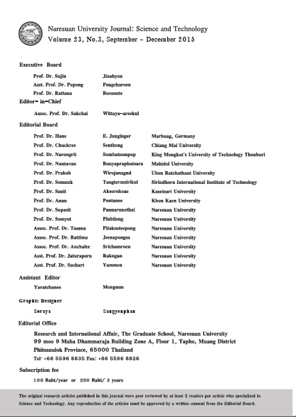 วารสารมหาวิทยาลัยนเรศวร: วิทยาศาสตร์และเทคโนโลยี